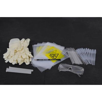 The DelAgua Accessory Upgrade Kit Includes the following useful additional items for field use: Pack of 20 plastic innoculating needles for colony counting, chinagraph pencil for labelling, eyeshields, disposable gloves – 5 pairs, biohazard bags for storage of used pads and membranes x 10, water wash bottle 500 ml, 3 ml Pasteur pipette, disposable, pack of 10, for adding media to pads.