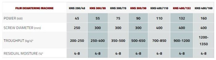 Comparing to hot air dryers and centrifugal dryers, Film Dewatering Machines are the most efficient systems in Film Dewatering when considering energy efficiency, operation costs, capacity and easy operation.