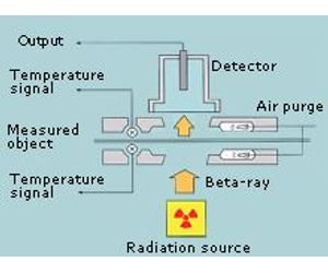 Beta-ray sensors irradiate objects to measure their thickness (basis weight), calculating this based on the attenuation of the radiation as it passes through the object. Beta-ray sensors can measure any object provided the thickness is within the specified measuring range.