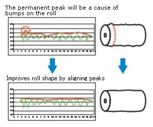Roll shape control incorporates rules that have been formulated based on the customers` know-how and applies it to CD control. By means of CD control, it improves roll shape by eliminating outstanding peaks.