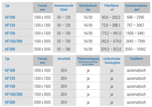 FILOX overhead presses in the 1000-2000 mm format can be used in addition to applications in the chemical and food industries for high waste water volumes from municipal and industrial sewage treatment plants.