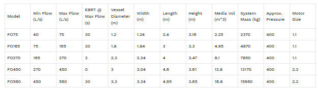 - Deep-bed design with minimal static pressure