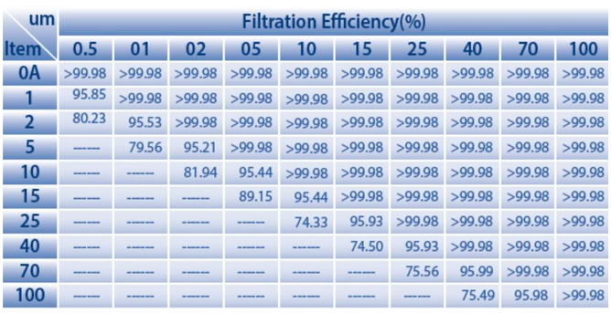 - Micron Rating 0.5, 1, 2, 5, 10, 25, 40, 50,70, 100 and other micron