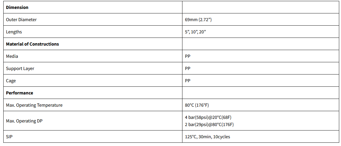 - Graded structure from outside to inside prevents slurry from blocking the membrane surface shortly and makes full use of dirt holding space, winding design to accurately filter the slurry of CMP, intercept large particles and release targeted one effectively.