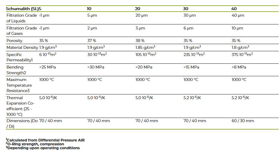 This ceramic filter material is distinguished by its excellent thermal resistance as well as thermal shock resistance. For this reason Schumalith filter elements are well suited for the filtration of hot fluids with fast temperature changes. The high performing Schumalith filter elements are mainly used for high temperature applications.