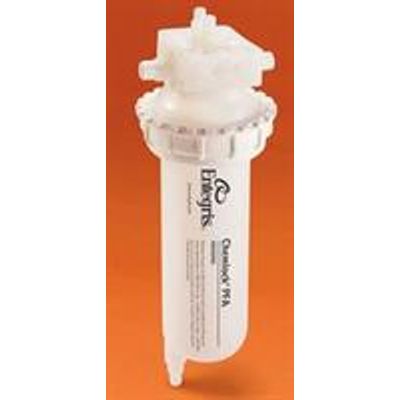 Bulk and point-of-tool, filter-housing-head (component) with advanced cleanliness and flow rate performance in microelectronic applications. Paired with a Chemlock filter-housing-bowl to form the complete housing system.