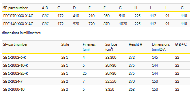 SF EDM filter housings: carbon steel with cast aluminium cover. NBR gasket: compatible with mineral oils, glycol-water and oil emulsions. Volume flow: FEC 070: 70 l/min.. FEC 140: 140 l/min.. Number of elements: FEC 070: 1 filter cartridge. FEC 140: 2 filter cartridges. Working pressure: max. 6 bar. Working temperature: -20°C - +100°C. Thread: G ¾". Other versions on enquiry.