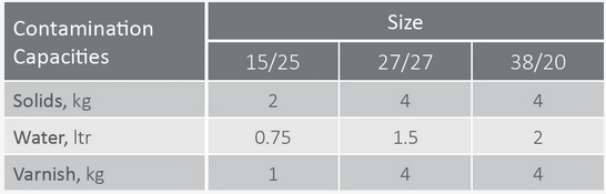 When saturated, the total weight of accumulated contamination depends on the application, the combination of contaminants, as well as the density of the captured contamination.