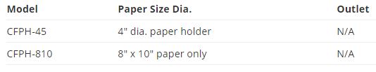 4” Dia. & 8” x 10” Filter Paper Holder Attach CFPH-45 & CFPH-810 to units with 4” dia., threaded intake fittings.