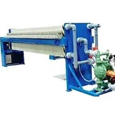 Filter Press is an equipment used to separate sludge into solid and liquid form under pressure filtration. Filter cloth mounts on the rectangular shaped frame, number of such rectangular frames are assembled to prepare filter press, thin sludge fed to these frames and then pressured with the help of hydraulic pressure equipment, Filtrate is collected and recycled back to the preliminary treatment facility and thickened sludge is sent to further treatment or final disposal as per the guidelines.