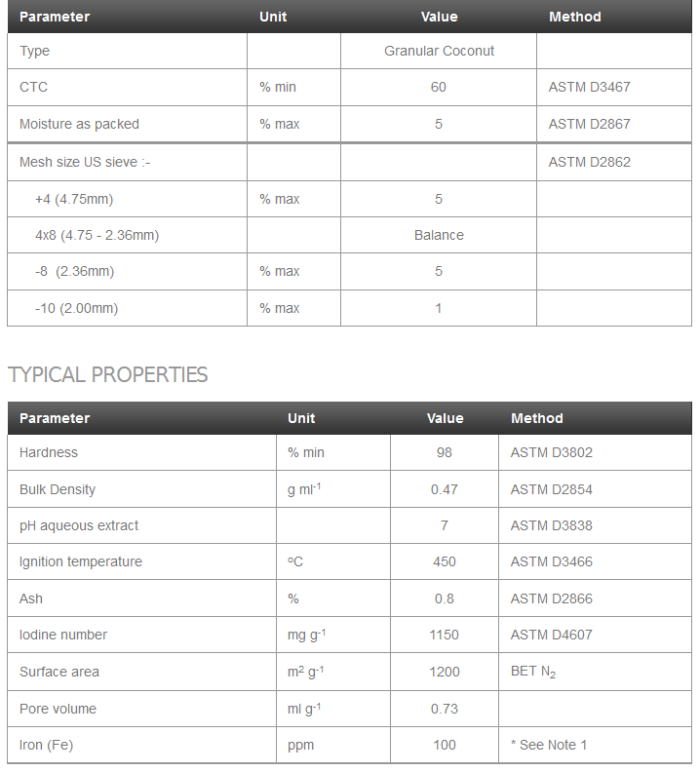 Filtracarb AX0 is a granular activated carbon manufactured from specially selected grades of coconut shells by a steam activation process. The material is manufactured under stringently controlled conditions to produce a porous adsorbent with a highly developed internal surface area. Acid washing, followed by neutralisation, is then undertaken, to remove soluble mineral constituents from the matrix of the activated carbon, producing an adsorbent of exceptional purity.