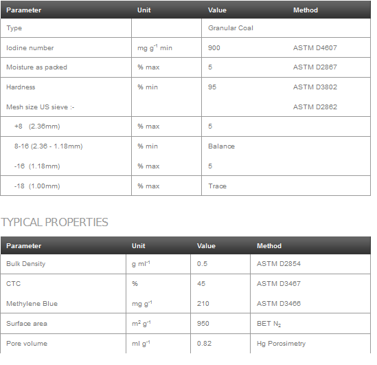 Filtracarb CC50 is a granular activated carbon manufactured from specially selected grades of coal by a steam activation process. The material is manufactured under stringently controlled conditions to produce a porous adsorbent with a highly developed surface area.