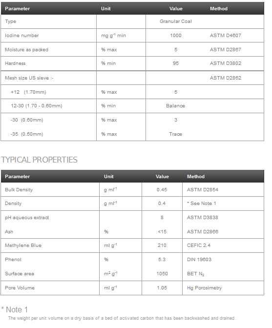 Filtracarb CC60 is a granular activated carbon manufactured from specially selected grades of coal by a steam activation process. The material is manufactured under stringently controlled conditions to produce a porous adsorbent with a highly developed surface area.