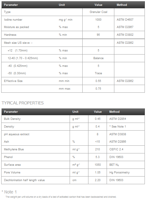 - Conforms to BS EN 12915-1:2003 (GAC for drinking water treatment)