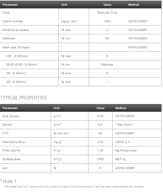 Filtracarb CC60AW is a granular activated carbon manufactured from specially selected grades of bituminous coal by a steam activation process. The material is manufactured under stringently controlled conditions to produce a porous adsorbent with a highly developed surface area. The product is acid washed to reduce the soluble mineral content of the material for use where high purity streams are to be treated