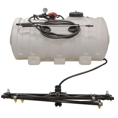 The FIMCO 65 Gallon Value UTV Sprayer 2.4 GPM Pump and 5 Nozzle Boom is designed to work with UTV`s and offers the versatility to spray tight spaces or larger areas. The UV resistant, molded polymer tank has a 5 inch tethered lid for easy access and is completely drainable. This model features the High Flo High Performance 2.4 GPM 12 Volt Pump. The Lever Grip Spray Wand features an adjustable spray pattern poly tip which adjusts from a stream to cone and distributes up to 30 feet of horizontal spray, 16 feet of vertical spray and comes with 15 feet of 3/8 inch hose.