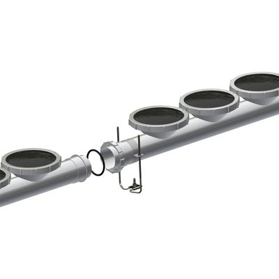 FlexAir Basic systems include pipe and supports in addition to diffusers. Laterals come with disc holders and connections installed, and distribution headers have connections installed.