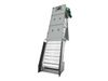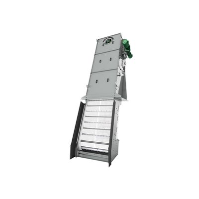 The Finescreen Monster uses a continuous band of UHMW perforated panels to capture and lift solids out of the channel. Stainless steel panels are also available. A wash water spray system ensures material is sent to the discharge chute and the screen stays free-flowing and clear. Debris then drops into the integrated Screenings Washer Monster for grinding, washing, dewatering and compacting.