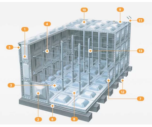 FINETANK - GRP Sectional Tanks basically adapt the internally reinforced system, which ensures the better reliability and robustness. As an option, externally reinforced system which has no internal reinforcements also can be applied according to project`s requirement.