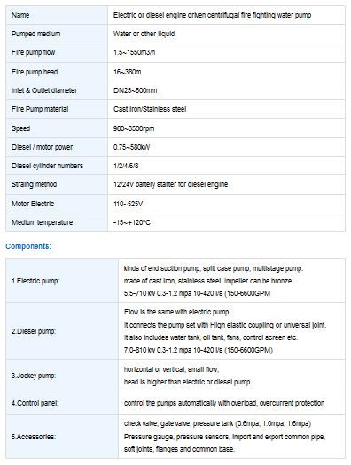 XBD Series Electricity Fuel Centrifugal Fire Fighting Water Pump is the new middle and low pressure fire fighting product, which researched by our company according to the latest standard(GB 6425-1998) of fire fighting pump in our country, its motor and fire pump is connected directly, which simplified the middle transmitting structure, and strengthen operation`s stability. Its building area is less 30% than common horizontal fire pump, the shaft seal adopts hard alloy mechanical seal without leakage, its inlet and outlet can be installed at any position and any direction like valve, its noise is low, maintenance is convenient, shake is little and so on. XBD series include four structural types to meet the different requirements of users, including vertical single-stage fire pump, vertical multistage fire pump, horizontal single-stage fire pump and horizontal multistage fire pump.