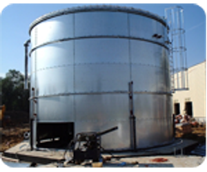 - Aluminum / Galvanized cylindrical bolted panel sprinkler and potable water storage tanks.