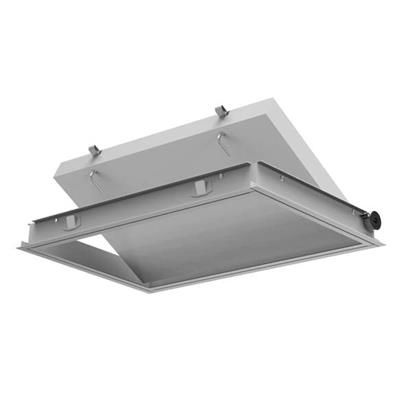 An insulated, fire rated access door for inward opening in ceilings. For fire rated ceilings, this door has been approved by Warnock Hersey International for 3 hours (max. size to 24” x 36”). Insulated Door Panel. Self-closing. Self latching. Inside latch release.