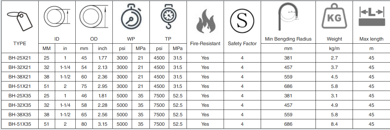 APPLICATION: Fire rated hydraulic hose assemblies for land and topside BOP applications.Armor BOP hoses are complying with API 16D guidelines to meet and exceed OD/1000/499 flame testing at 1300?(704 ?) for 5 minutes.