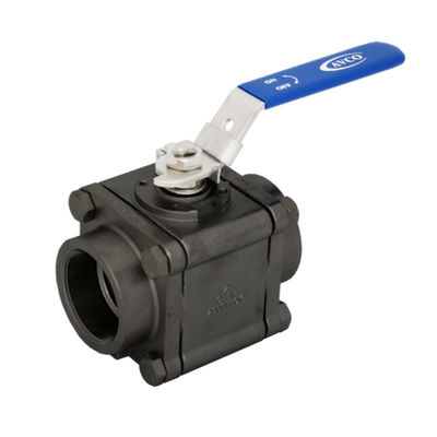 The AVCO chlorine service ball valves are the AVCO 1100 Series or 1900 Series 3-piece ball valve modified for chlorine service. All valves comply with Pamphlet 6 from the Chlorine Institute and are appropriate for Chlorine service classes I & IV. The valves are configured using a carbon steel body and ends with a ball, stem and retainers made from either Monel 400 or Hastelloy C. The ball is vented to provide pressure relief during operation. The stem is live loaded with blow out prevention and has online adjustment capability. Sealing occurs at the thrust washer inside the body to reduce the potential for leakage. B7 body bolts and 2H nuts provide added strength and safety.