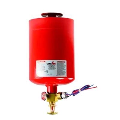 The CFP 640 bridges the difficult gap between small spaces and mid-sized spaces. It is a Dry Chemical unit designed to be installed vertically. It protects any space 8` x 8` x 10` or smaller. Great for modular spaces, portable shelters, storage rooms, any space that requires automatic fire suppression, or as part of a networked system for applications eight foot wide but longer in length, like a conex box. Our CF-33 dry chemical agent is non-corrosive, non-conductive & non-toxic, making it a safe option for nearly any application.