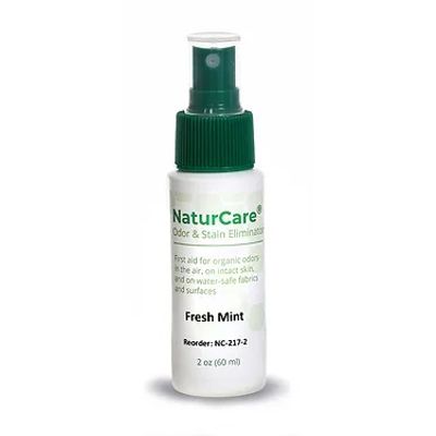 First aid for organic odors in the air, on intact skin, and on water-safe fabrics and surfaces. Natural vegetable extracts and orange/grapefruit essential oils eliminate odors from incontinence, illness, ostomy, immobility, and food. NaturCare helps lift stains & keep them from setting on fabrics. Clinically shown to be effective and pleasant without leaving a lingering chemical smell.