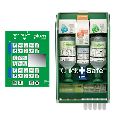 One-stop access point to first aid products. You will never need to search for the eyewash, plaster, bandage and other important first aid products when you need them the most. You can make it all available in a state-of-the-art QuickSafe first aid station, which provides for a flexible solution with customised product content. With the transparent lid you can immediately locate, and quickly and safely fetch the needed first aid.