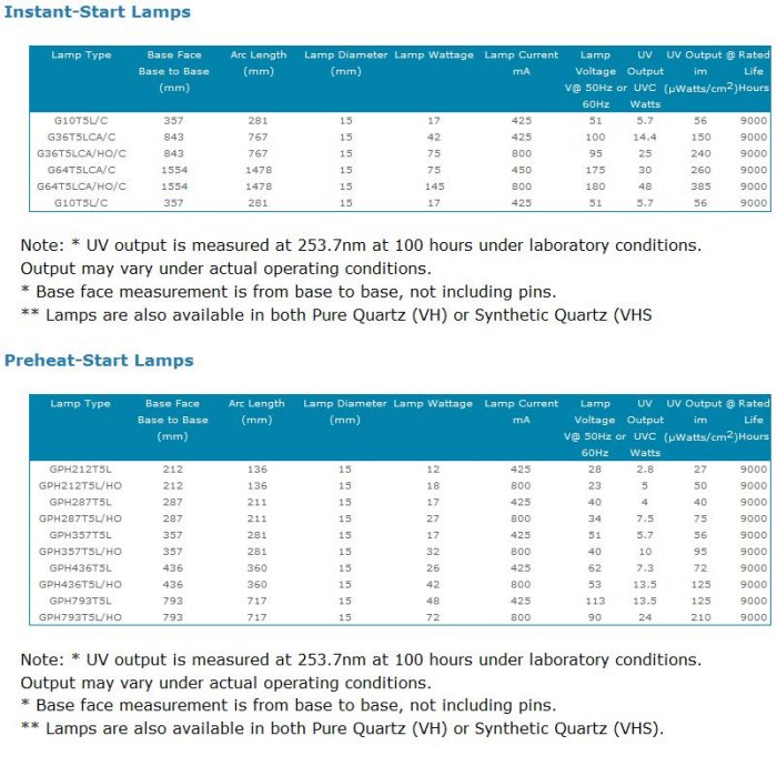 Lamps manufactured by First Light are made of pure quartz tubing versus soft glass to maximize the lamps usable life. Soft glass lamps have reduced output and shorter usable life due to the negative effects of solarization.