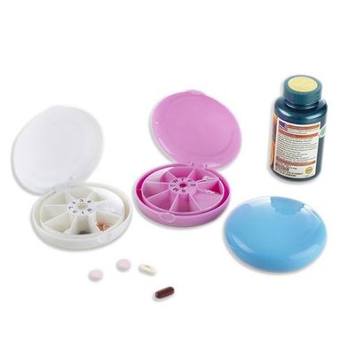This colorful powder-box-like product particularly appeals to female buyers. Pills on the ring-shaped plate can be extracted after rolling the plastic cover.It is easy to use with glossy appearance.