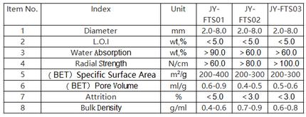 JY-FTS type products have the characteristics of high compressive strength, low abrasion, adjustable size, pore structure, and bulk density. All indicators can be adjusted according to requirements. It is widely used in the fields of adsorbent, hydrodesulfurization catalyst carrier, hydrodenitrogenation catalyst carrier, CO sulfur tolerant shift catalyst carrier, etc.