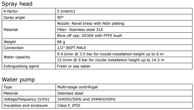 The fire suppression or extinguishing function is based on the water mist M5 spray head which has proved its efficiency through many full-scale tests and real-world fires, complemented by DESMI design for easy and safe operation during the entire lifetime of the product.