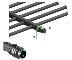 Polypropylene feeder for grids in bioreactors and degreasing tanks. Suitable for both municipal and industrial wastewater treatment plants. Allows the installation of Aquadisc® 250 / 305 / 320 and Aquatube® 70 diffusers. Diffusers are known for their excellent temperature resistance, recyclability, and longevity.