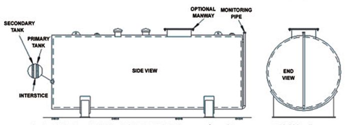 - Primary and secondary tanks can be tightness tested on site with standard testing procedures, or manufacturer may ship with vacuum in the interstice to prove the integrity of both walls during installation.