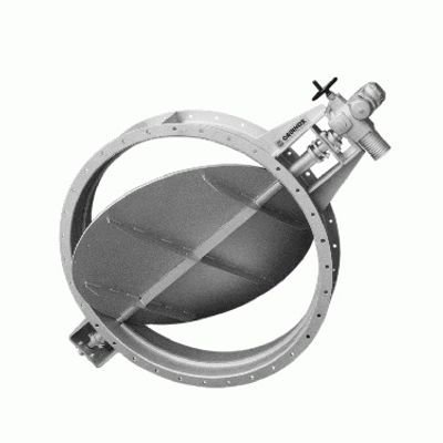 Regulating or isolating round butterfly damper. Normally with one single disc on a central shaft and optionally with multiple interconnected blades. Available with pneumatic, electric, hydraulic or manual actuator. Depending on the sealing system, varying levels of tightness can be obtained (95% -100 %). Suitable for low pressure combustion gases at high temperatures (600ºC). Applications in cogeneration plants, waste heat recovery systems. Sizes: Up to DN 2500.
