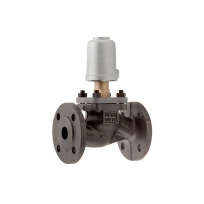 The flanged valve with pneumatic actuator and body made of gray cast iron or spheroidal graphite iron in installation length and flange pattern according to DIN.