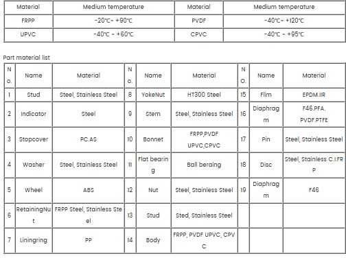 Diaphragm valve material app temperature bound.