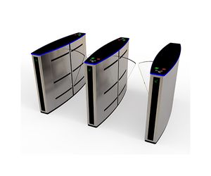 Flap barrier turnstile is a simple and cost-effective waist high optical turnstile which is made up of two cabinets connected by invisible infrared beams. These cabinets use the infrared beams to detect whether pedestrians have passed through the optical turnstile lane. The illegal intrusions or tailgating attempts will trigger a visual or audible alert . If the turnstile is supplied with a physical barrier, the barrier will refuse to open along with the alerts to effectively deny access. Flap barrier gate turnstile is able to be integrated with various access control systems and can be controlled remotely. Flap barrier turnstile gate is mostly used at commericial and industrial places such as exhibitions, supermarkets, public transports.