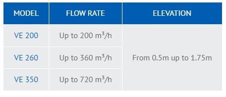 - Lifting and transfer of fresh, salt or brackish water at low height in all areas of activity.