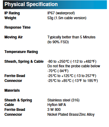 The PB-7006-3M is a general purpose stainless steel probe with a 3m flat cable designed to pass through a fridge or freezer door seal with minimal effect. It monitors temperatures as low as -80°C and as high as +250°C* making it ideal for a variety of applications from cold stores to incubators. This waterproof (IP67) probe uses a high specification resin and a unique manufacturing technique that allows both the sheath and the cables to be exposed to their full temperature range. This probe is also available with a 1.5m cable (PB-7006-1M5).