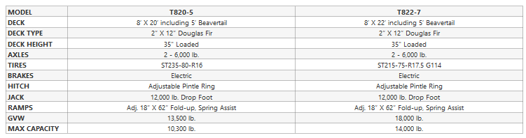 • Brakes: Surge/Hydraulic (NOTE: Surge brakes may be deemed illegal in certain applications), Electric/Hydraulic, Disk Brakes on -5 Model and Above