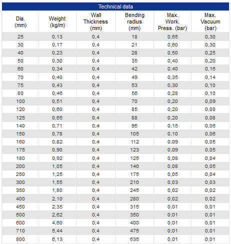 Light weight and very flexible Polyurethane ducting.