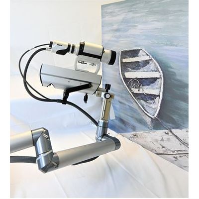 High-precision large Stand with adjustable horizontal Arm. On wheels or attached to a table, it facilitates observations of large-size objects: L-shape or rotational ball-head extension for 360° free angle lens position. Adjustable columns for any alternative work. Carrying-case and more options.
