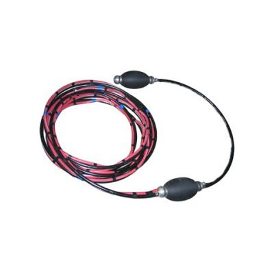 A ¾-inch semi-rigid hose serves both as the push rod and as the inflation line for simultaneously inflating both bladders. The test chamber is pressurized through a ¼-inch air hose, which can optionally be replaced with a ½-inch semi-rigid hose when a second push rod or test line is required.