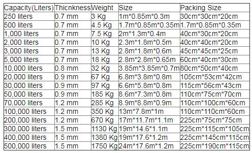 Our products have pillow tank, water bladder ,fuel tank ,fish tank and etc. Commercial Potable PVC/TPU Marine Large Pillow water tank provide customized service, we have material of TPU, PVC etc. for your choice. TPU is FDA approved material, it`s most suitable for human drinking, also for fuel storage. PVC is suitable for animal water drinking, farm use etc. Thickness we provide 0.7mm , 0.9mm , 1.0mm, 1.2mm, 1.5mm for choice. In a word ,It can be-used to store Industrial water, Fire water, Fire fighting, Rainwater harvesting, Irrigation water, Humanitarian, Concrete mixing water, Drinking water, Slope green water, Sewage water storage and Oil well cementing.