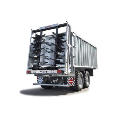 “Gigant” push-off trailer with powerful spreader mechanism. Fliegl spreader mechanisms can spread the widest variety of materials accurately and uniformly over useful farming areas. This optimises the effectiveness of the fertiliser, so you do not have to purchase any mineral fertilisers. So you save time and money.