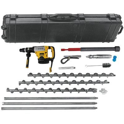 The AMS 2" flighted auger kit is equipped to drill access holes up to 9` deep. The included 1 1/2" x 6" soil core sampler may then be used to collect soil samples in liners. Additional extensions may be added to obtain deeper depths. Kit Includes Bosch 11245, 5/8" threaded male to SDS Max adapter, 1 1/2" x 6" soil core sampler, slide hammer, 2" flighted lead auger with hard surfaced tip, 2" carbide tip, two 2" x 3` flighted extensions, three 5/8" x 4` extensions, universal slip wrench, 1 1/2" x 12" nylon brush, AMS deluxe carrying case.